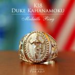 K18 ハワイアン デュークカハナモク リング Hawaiian jewelry Puaally 手彫り 指輪 18金 サーフィン プレゼント メンズ サーフ 海 ピンキーリング
