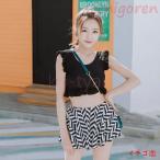 水着 3点セット レディース ビキニ 水着 セット 体型カバー かわいい 大きいサイズ 3L 4L 5L 6L キャミソール スカート シアーワンピース 水着 ママ 長袖