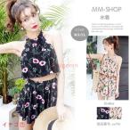 水着 レディース セパレート水着 花柄 タンキニ水着 ショートパンツ ホルターネック オシャレ 2点セット フレア ノースリーブ 海 リゾート 温泉 海水浴 ビーチ