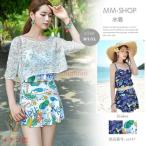 水着 花柄 レディース 2点セット ショートパンツ 水着 セパレート 花柄 体型カバー 大きいサイズ