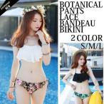 水着 レディース 花柄 チューブトップ バンドゥ フリル ビキニ 2点セット 体型カバー セパレート スイムウェア