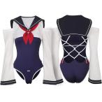 セーラーハイレグスクール水着 セーラー服 制服 スク水 ワンピース レオタード セクシー コスプレ (ホワイト/ネイビー, M)