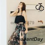 水着 3点セット キャミソール パレオ 体型カバー ビキニ プリント ホルターネック リゾート レディース