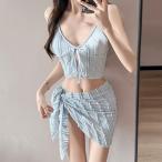 夏 タンキニ 水着3点セットパレオ付き 韓国