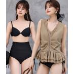 水着 胸元フリルハイウエストビキニ 水着 レディース