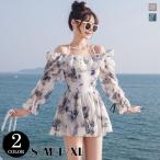 水着 レディース ワンピース 20代 30代 可愛い 長袖 フレア オールインワン 夏休み 体型カバー シンプル カジュアル 着痩せ 海水浴 日焼け防止