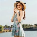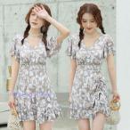 水着レディース 体型カバー 水着 ワンピース型 花柄 ショートパンツサロペット水着 バンドゥ 水着 韓国風 40代 可愛い スイムウェア ママ水着