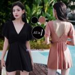 水着 ショートパンツ ワンピース オールインワン かわいい おしゃれ パッド付き パンツ Vネック背中出し 可愛い ノンワイヤースイムウェア 温泉水着