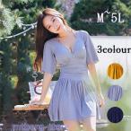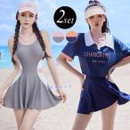 夏 水着 レディース ワンピース トップス 2点セット 体型カバー 2way おしゃれ かわいい 無地 ロゴ ビックカラー 半袖 メッシュ