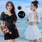 水着 夏 レディース ワンピース 春 体型カバー パフスリーブ ラグジュアリー シアーワンピース 春 可愛い おしゃれ