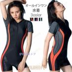 水着 レディース フィットネス水着 ワンピース フロントジップ スイムウエア パッド付き ショートパンツ 半袖水着 練習用水着 スイミング 春新作