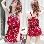 水着レディース 体型カバー 水着 ワンピース型 サロペット 花柄 小胸バンドゥ 水着 フリル 韓国風 40代 大きいサイズ 可愛いスイムウェア 温泉 ママ