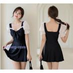 水着 夏 レディース ワンピース 春 体型カバー ワンピース 春水着 夏 ドロストギャザー ガーリー パフスリーブ 可愛い ガーリースイムウェア