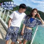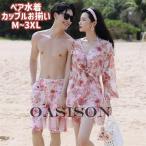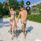 水着ペア ペアルック カップル水着 レディース メンズ 4点セット 花柄パッド付き メンズ水着 男性用 ビーチパンツ サーフパンツ みずぎ mizugi ミズギ 男女 温泉