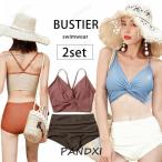 水着 レディース ビキニ タンキニ 20代 30代 バックシャン可愛い ハイウエスト ショーツ 無地 シンプル モノトーン バンドゥ クロスビキニ
