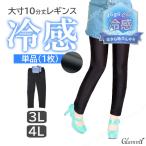 10分丈 冷感 レギンス 大きいサイズ 3L 4L 体型カバー 接触冷感 夏用 さらさら ひんやり 無地 黒 ブラック 冷たい 涼しい レッグウェア レディース メール便