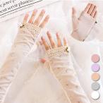 アームカバー レディース ファッション ロング 袖 グローブ シースルー リボン ラインストーン 両手 女性用
