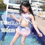 水着 スイムウェア キッズ 子ども用 子供用 女の子 セパレート キャミソール スカート フリル 総柄 チェック ブルー ピンク グリーン カジュアル