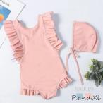 水着 スイムウェア 水泳帽 スイムキャップ 2点セット ツナギ ワンピース キッズ ベビー 子ども用 子供用 赤ちゃん 女の子 ノースリーブ クロスバ