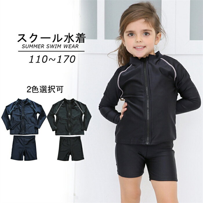 キッズ スクール水着 女の子 長袖 セパレート型 子ども用 スイムウェア ブラック ネイビー 小学生 女子 女児 水泳 スイミング プール 学校 授業 体育 子供 黒 紺 120cm 130cm 140cm 150cm 160cm 170cm
