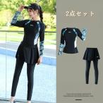 水着 スカート セパレート水着 長袖 フィットネス水着 ぽっちゃり水着 レディース 大きいサイズ 2点セット 競技 競泳 体型カバー 海水浴 温泉 大人