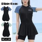 水着 レディース 競泳用水着 ジム 体型カバー ワンピース水着 オールインワン 半袖 UVカット ビキニパンツ 韓国風 可愛い スイムウェア ママ水着 学生 温泉