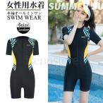 半袖 オールインワン フィットネス水着 ラッシュガード レディース 前開き パッド付き スイムウェア 競泳 練習用 ウェットスーツ 速乾 紫外線対策