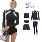 ラッシュガード水着 レディース 水着 競泳水着 水着セット 体型カバー 5点セット 長袖 スポーティー フィットネス 水着 セパレート ショートパンツ
