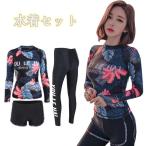 レディース 水着 競泳水着 水着セット 体型カバー ラッシュガード 半袖 スポーティー フィットネス 水着 セパレート 3点セット ショートパンツ 長袖