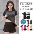3点水着セット フィットネス水着 競泳水着 レディース 水着 セパレーツタイプ ジム用 !ヨガ トレーニング スポーツ セパレート 半袖 ファッションママ