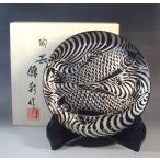 天目釉プラチナ彩流水鯉絵飾り皿|有田焼 陶芸作家 藤井錦彩作