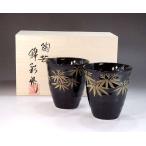 天目釉金彩竹絵焼酎カップ・ペアセット|有田焼 陶芸家 藤井錦彩作