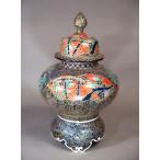 染錦金彩唐草文様扇割花尽くし絵飾り沈香壺|有田焼 陶芸作家 藤井錦彩作