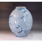 染付青海波菖蒲鷺絵花瓶|有田焼 陶芸作家 藤井錦彩作
