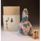染錦金彩菊唐草割山水画花瓶|有田焼 陶芸作家 藤井錦彩作