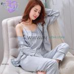 シルクパジャマ レディース 上下 3点セット セットアップ インナー キャミソール ルームウェア 部屋着 長袖 前開き 大人 可愛い 春 夏 秋 冬