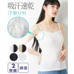2枚セット キャミソール 脇汗 汗取り インナー 脇汗パッド付き レディース 春夏 素肌ドライ 汗染み 綿混 吸汗速乾 コットン さらさら 涼しい 夏用