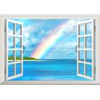 絵画風 壁紙ポスター (はがせるシール式) -窓の景色- 沖縄の海景色 幻想的な虹 波照間島ニシノ浜の鮮やかなレインボー 絶景 【窓仕様/トリックアート】 キャラクロ M-OKN-0010MA2(A2版 594mm×420mm)<日本製> ウォールステッカー お風呂ポスター