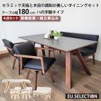 セラミック天板と木目の調和が美しいダイニングセット LD 4点セット テーブル幅180cm 椅子2脚 回転チェア ダイニングベンチ ハの字脚 天然木 大川家具
