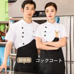 コックコート メンズ レディース 男女兼用 コック服 調理服 2点セット エプロン 半袖 調理用 レストラン 制服 厨房用制服 厨房 飲食店 おしゃれ