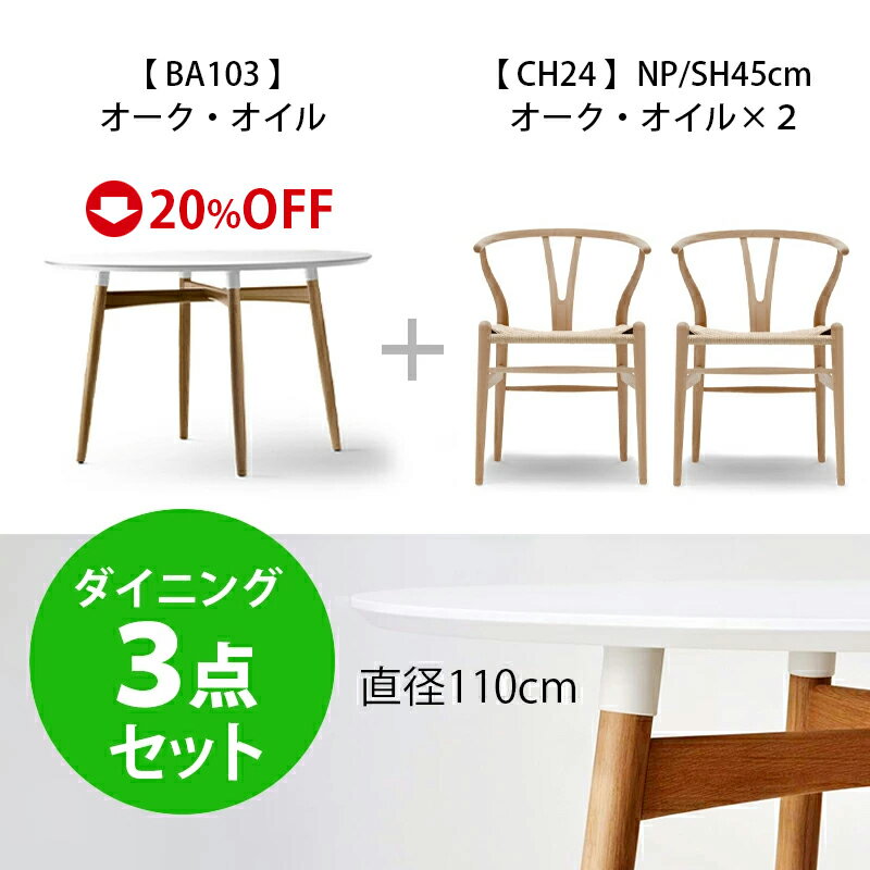 《設置便無料》カールハンセン&サン[ダイニング3点セット]丸テーブル BA103 オーク/オイル + Yチェア オーク/オイル 2脚セット【テーブル20%OFF】ダイニングセット CH24 Yチェア yチェア 【ダイニングセットキャンペーン 春のインテリアアップデート】