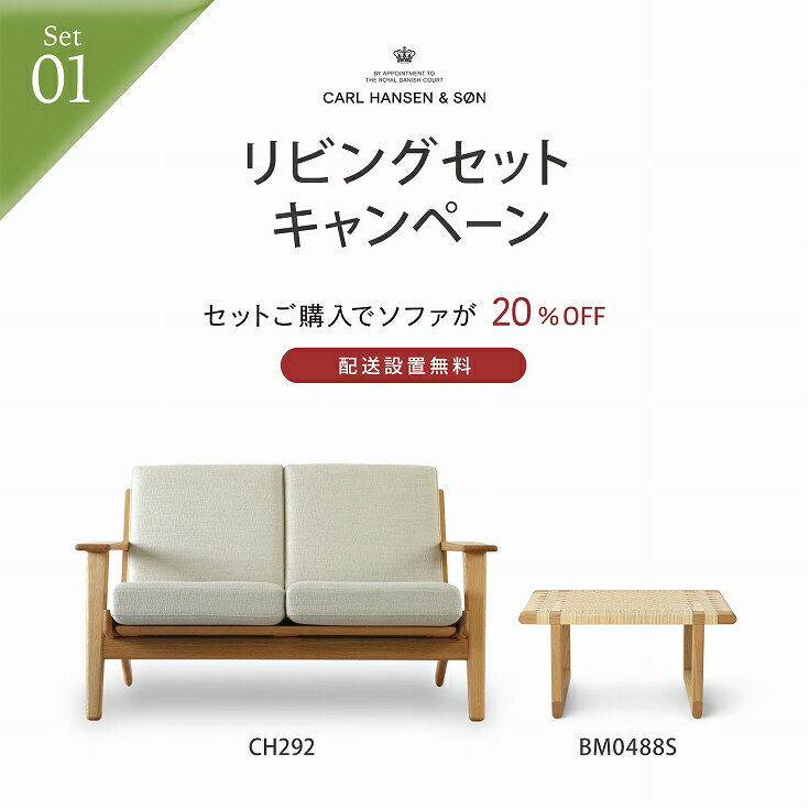 【LIVING SET キャンペーン対象】CONNECTセレクトリビングセット1 / CARL HANSEN & SON(カール・ハンセン&サン) / CH292ソファ(オーク・オイル・ANTONI 813)+BM0488Sコーヒーテーブル(オーク・オイル・籐張り)
