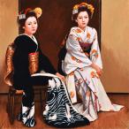 荒木義太郎 「くつろぐ舞妓二人」 油彩画S50号 額付き