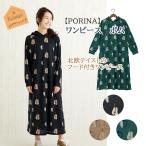 ロングワンピース レディース 長袖 秋冬 ルームウェア フード付き 楽ちん 部屋着 北欧風 おしゃれ りんご 洋ナシ PORINA ワンピース ポム