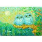 油絵 油彩画 洋画 (油絵額縁付きで納品対応可) F6号 「聖夜のふくろう」 佐野 千恵子