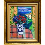 坂口紀良 「 バラとコートダジュールの窓辺 」 油絵・油彩画 F6 ( 6号 ) 絵画 洋画 肉筆 手描き 真筆 花 外国の風景 海 空 明るい 鮮やか 送料無料