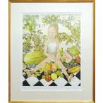 藤田嗣治(レオナール・フジタ) 絵画 少女と果物 送料無料【中古】【複製】【リトグラフ】【エスタンプ版画】【巨匠】