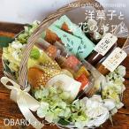 洋菓子とお花のギフト OBARU-オバール 花かご アーティフィシャルフラワー 贈答品 お歳暮 お中元 お見舞い お礼 感謝 ありがとう 内祝 引出物 出産祝い 母の日