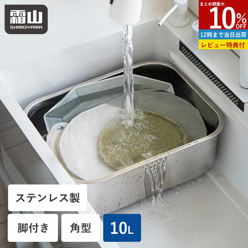 【10%OFF スタート4H限定】【特典付】洗い桶 ステンレス 10L 水切り 脚付 角型 大容量 排水穴 つけ置き つけ置き洗い用 穴付き 洗い物 たらい あらいおけ おけ 足付 タライ 野菜 食器洗い 皿洗い 漬け置きカゴ シンク周り 水周り 四角 長方形 すすぎ シンプル 霜山
