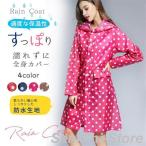 レインコート トレンチ レディース ロング フードつき ポケット付き 収納袋付き 水玉 ドット柄 おしゃれ 防水 撥水 軽量 長め
